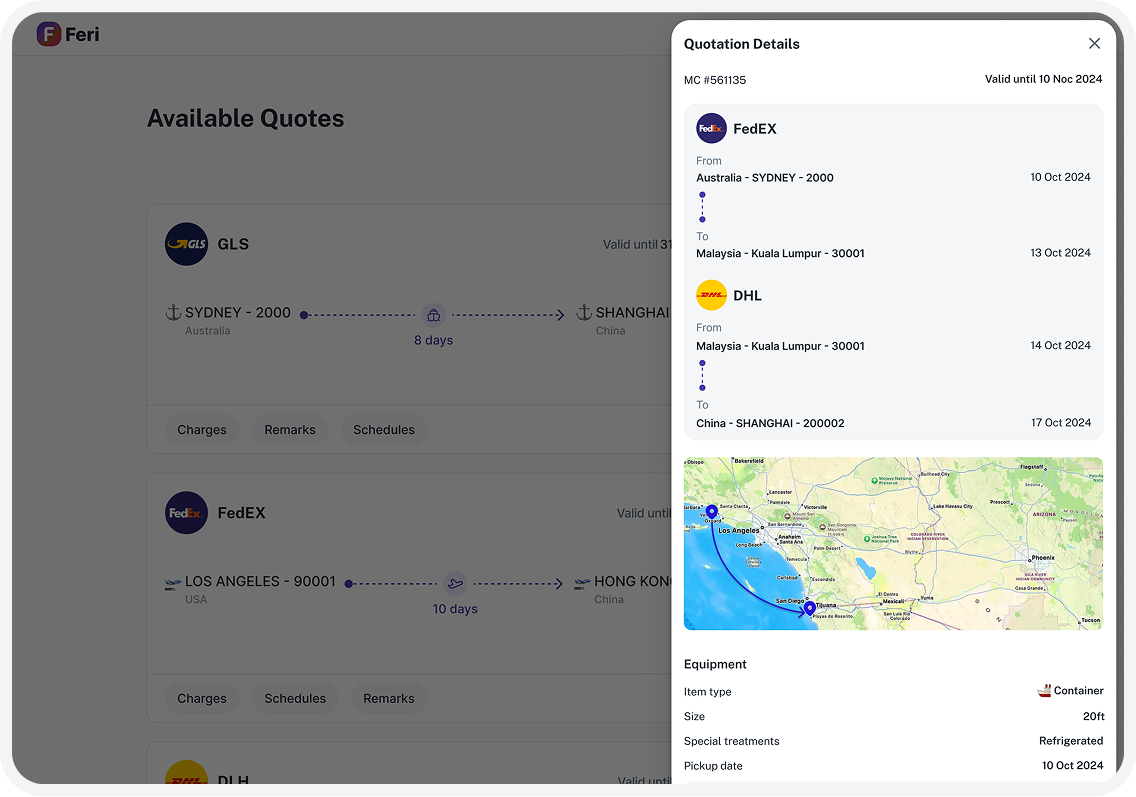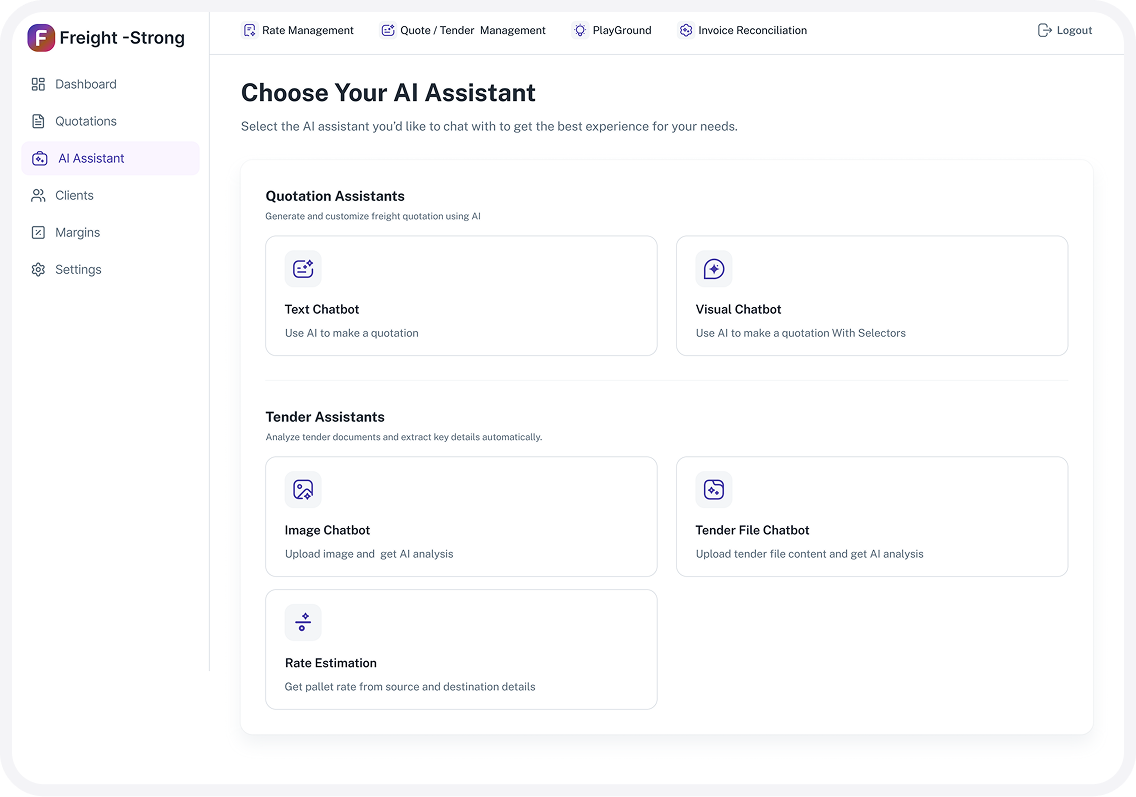 Fretara creates consistent, professional quotes tailored to your brand, using the best available rates and predefined margin rules. Sales teams respond faster while maintaining pricing discipline and profitability.